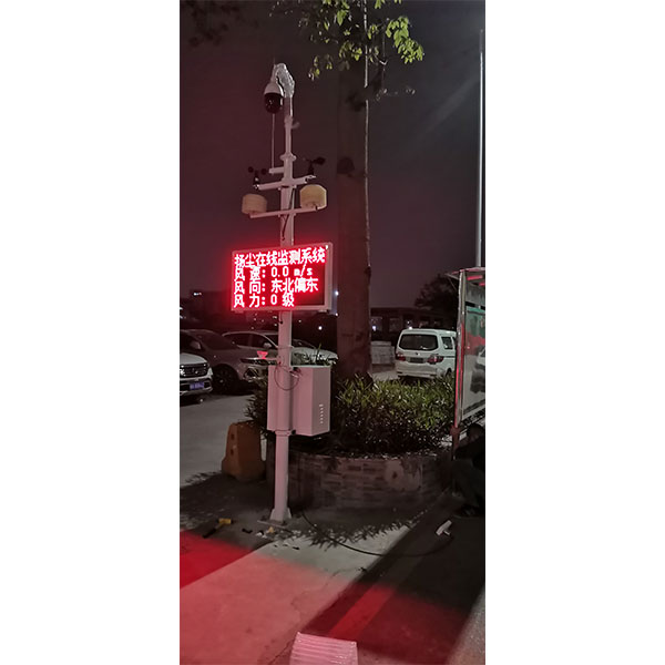 揚(yáng)塵(PM2.5、PM10)、TSP、噪聲、溫度、濕度、風(fēng)速、風(fēng)向、風(fēng)力、帶兩個(gè)攝像頭。